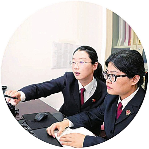 今年3月,金水区检察院检察官卢莹丽(右)和同事分析监控视频。