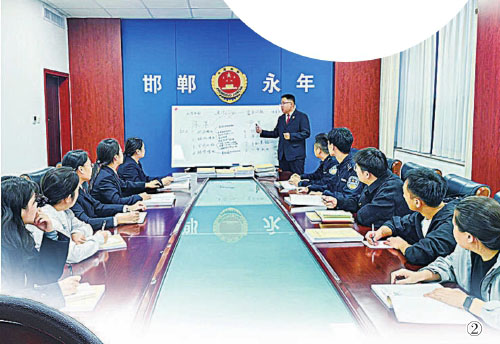 图②检察机关、公安机关办案人员及专业技术人员对案件进行讨论。