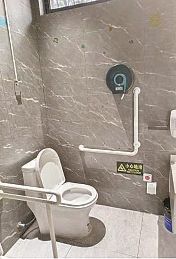 ◆类似L型抓杆般“失之毫厘”的细节,也存在于其他公共卫生间内:有的坡道缺乏清晰的无障碍标识,有的未设置可供倚靠的多功能台,有的救助呼叫装置设置偏高……