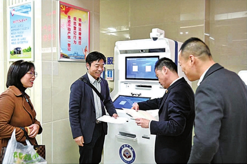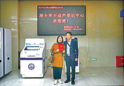 在湖南省湘乡市检察院办案检察官的见证下,孙先生夫妇从不动产登记中心的自助办理机上取得不动产权证书。