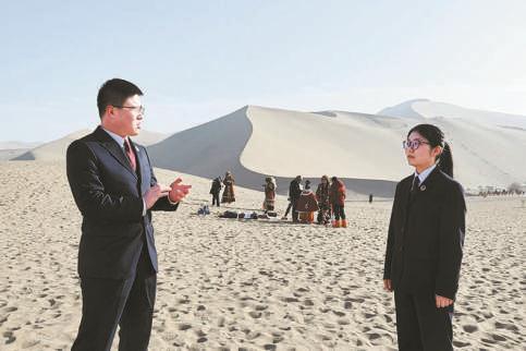 2026年1月,甘肃省敦煌市检察院检察官在鸣沙山·月牙泉景区跟进旅拍行业规范化整治相关情况。