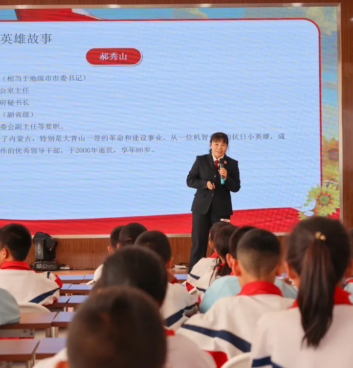 授课中,检察人员一方面聚焦未成年人权益保护,围绕《中华人民共和国未成年人保护法》,结合校园常见权益侵害案例,用通俗语言讲解学生在家庭、学校、社会层面的合法权益,指导大家识别风险、掌握“遇事找法”的自我保护技能,筑牢权益防护网;另一方面,创新融入红色法治内容,引入《中华人民共和国国旗法》《中华人民共和国英雄烈士保护法》,结合武川县本地革命历史,讲述先辈们的英雄事迹,阐释国旗的国家象征意义及守护英烈名誉的法律责任。通过“法律条文 + 英雄故事 + 家乡历史”的模式,引导学生自觉爱护国旗、争做英烈名誉守护者。