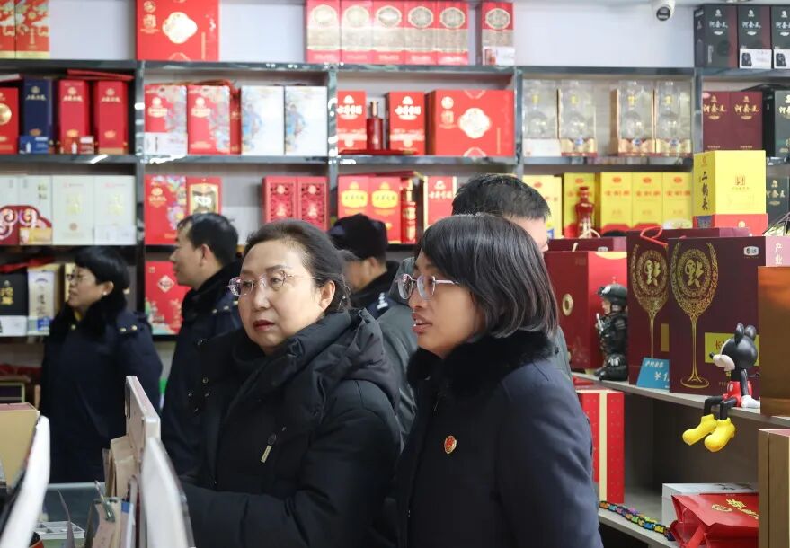 本次行动的核心亮点在于实现了多方力量的高效整合。联合行动组在人大代表的见证下,秉持“企业维权+行政执法+检察监督”的协同理念,深入辖区各大小商超、酒类品牌专卖店等重点场所,通过实地查看、台账比对、厂家专业鉴别、索证索票核验等方式,精准排查商标侵权、以假充真等侵犯知识产权的违法行为,有效净化白酒市场环境。