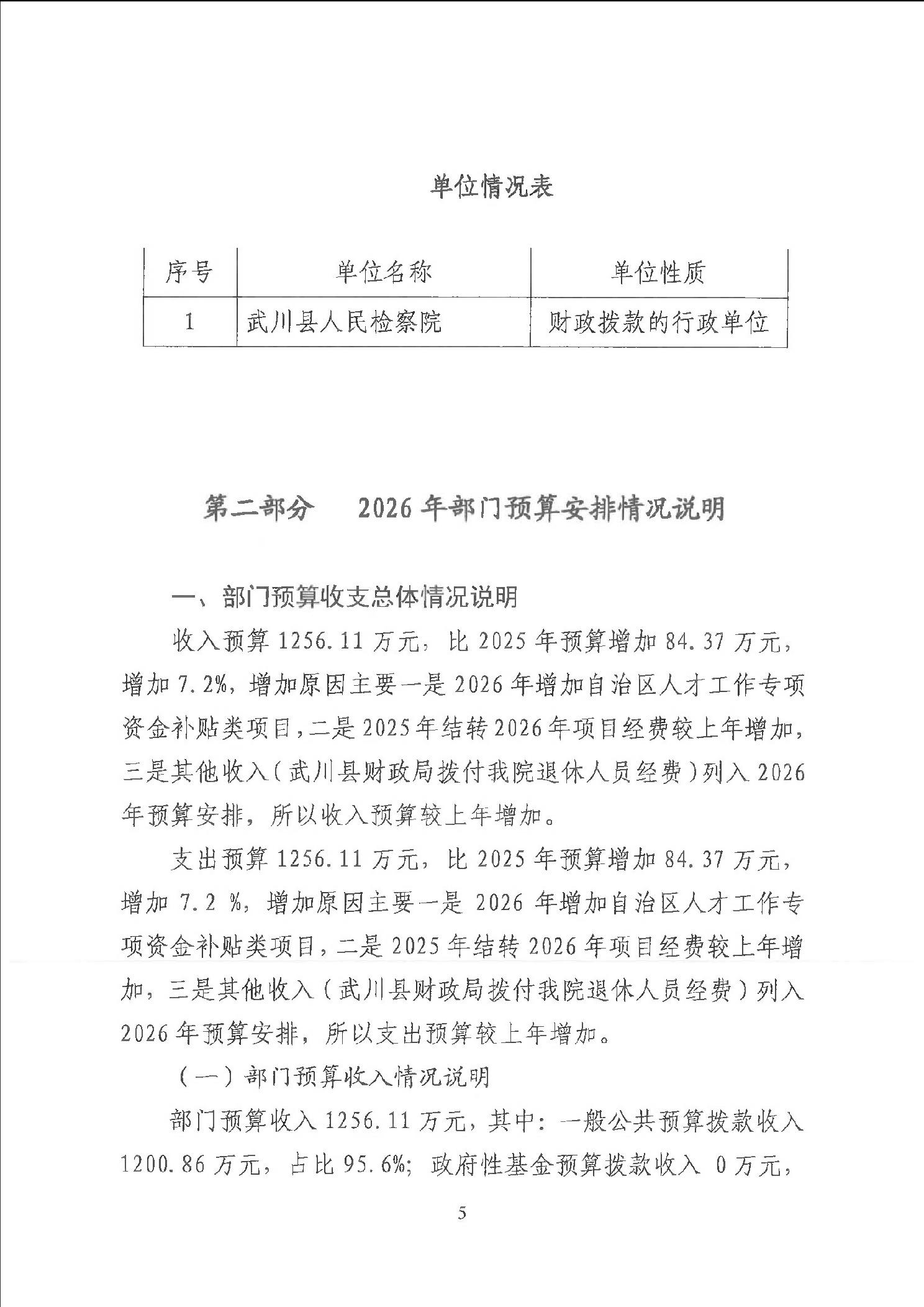 武川县人民检察院2026年部门预算公开报告