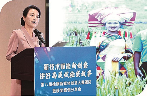 云南省景洪市检察院常务副检察长玉喃溜分享“喃滴溜”新媒体团队运营经验。