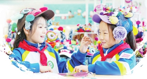 10月22日,山东省淄博市博山区四十亩地小学学生头戴自己创作的布贴画头饰。近年来,该区积极开展非遗进校园活动。目前,当地已成功引进非遗项目18项,13所学校在校本课程开发中融入非遗元素,通过课程化设计实现非遗的常态化传承,推动非遗教育与日常教学的有机结合。 新华社记者朱峥摄