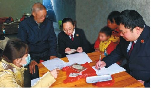 日前,广西壮族自治区梧州市龙圩区检察院在办理一起刑事案件时了解到,被害人陈某智力残疾,该院在调查核实并及时帮其申领司法救助金的同时,还针对陈某孩子未上户口问题,推动相关单位帮其解决孩子落户问题。图为春节前,该院检察干警与当地妇幼保健院、卫生健康局工作人员联合上门开展回访,了解其生活所需。