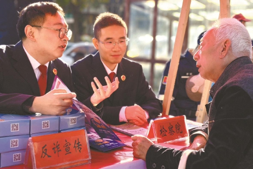 11月5日,江苏省兴化市检察院检察官普法宣讲团走进该市昭阳街道文林社区,参与“兴有爱,愿同行”主题志愿服务活动。普法宣讲团成员结合检察机关办理的中奖诈骗、冒充客服退款、刷单返利等电信网络诈骗典型案例,用方言土语向社区群众剖析犯罪分子的惯用伎俩,提醒大家牢记“不听、不信、不转账”,守好自家“钱袋子”。