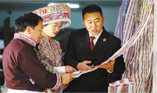 日前,贵州省黔西市检察院检察干警深入铁石苗族彝族乡,走访当地苗绣蜡染产业。干警们向当地苗绣和蜡染企业负责人了解当前苗绣与蜡染的传承、生产及销售情况,并围绕产品的图案设计、工艺技法、品牌标识等方面如何申请保护、防范侵权以及如何维权等问题,提供法律指引和实操建议。
