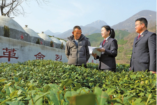 今年1月起,河南省信阳市浉河区检察院开展红色资源保护公益诉讼检察专项回访活动,通过实地查验、听取群众反馈等方式,全面跟进辖区红色资源管护措施落实情况,让红色基因赓续传承、代代相传。图为检察官在四望山实地核查无名烈士墓整改成效。