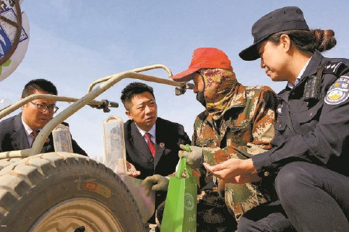 3月17日,甘肃省肃南裕固族自治县公安局环食药大队对辖区市场销售的种子、化肥、农药等农资产品进行检查,该县检察院检察官受邀参与,讲解掺杂掺假、虚假宣传等坑农害农违法行为的法律后果,告知农户依法维权的途径,护航农资安全。