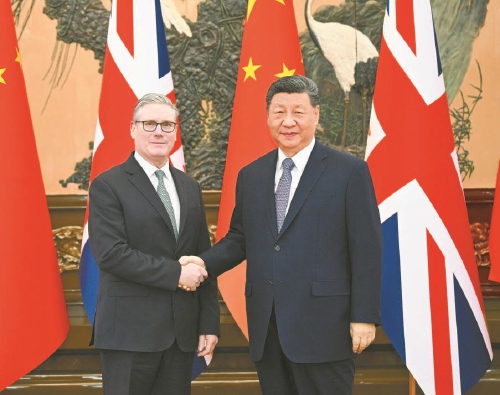 新华社北京1月29日电(记者邵艺博)1月29日上午,国家主席习近平在北京人民大会堂会见来华进行正式访问的英国首相斯塔默。双方同意中英要发展长期稳定的全面战略伙伴关系。