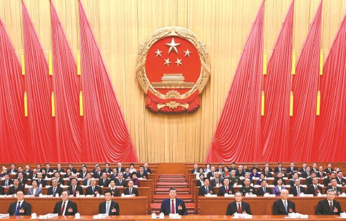 新华社北京3月5日电 第十四届全国人民代表大会第四次会议5日上午在北京人民大会堂开幕。全国人大代表肩负人民重托出席大会,履行宪法和法律赋予的神圣职责。