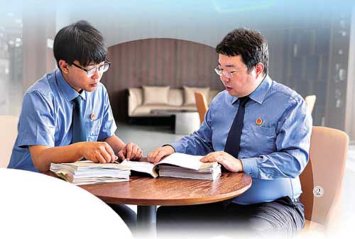 图③:检察官在接待室就企业所咨询的法律问题进行解答。